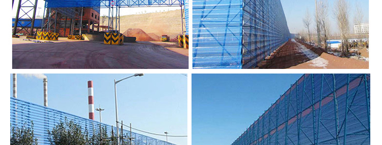 用途:主要用于煤礦、焦化廠、電廠等企業(yè)工廠的儲煤場;港口、碼頭儲煤場及各種料場;鋼鐵、建材、水泥等企業(yè)各種露天料場;農(nóng)作物防風,沙化天氣防塵等惡劣環(huán)境;鐵路、公路煤炭集運站儲煤場、建筑工地、道路揚塵、高速公路兩側(cè)等。單層擋風抑塵墻抑塵效果可達65~85%,雙層擋風抑塵墻效果可達95%以上;擋風抑塵墻不僅外形美觀,維護成本低并且具備防火,防盜等優(yōu)點;完全避免了以往表面覆蓋、噴淋技術(shù)、全封閉幾種措施反復(fù)投資、耗資巨大、受場地和作業(yè)要求限制、抑塵效果不佳的問題。