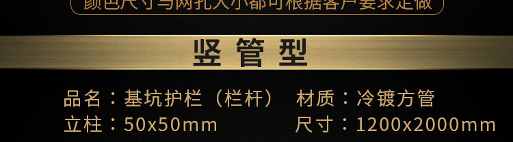 豎管基坑護欄是在施工現(xiàn)場安裝的,有效的防護隔離車輛人員掉入基坑。 ? ??
