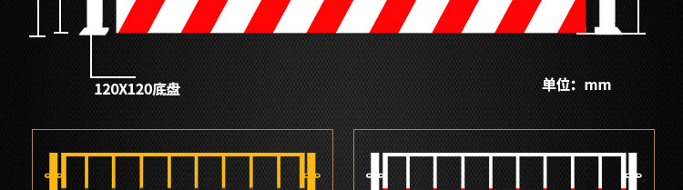 2.基坑護欄的護欄高度應不小于1200mm,護欄的高度應不小于1200mm,每套標準長度為2000mm(一套一柱一護欄)或間距從支柱的中間開始是2000mm,表面噴涂有紅色白色或黑黃色警告涂料,中間有*警告標語牌,底部有200mm(180mm)高的紅色,白色或黑黃色腳踏板。